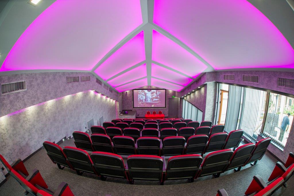 Светещи опънати тавани Clipso в конферентна зала на хотелски комплекс Национал Палас, град Сливен.Таваните са цялостно осветени от светодиодна лед лента 6000K, а по обиколката е монтирана RGB лед лента.Цялото управление на осветлението се контролира от dmx система.