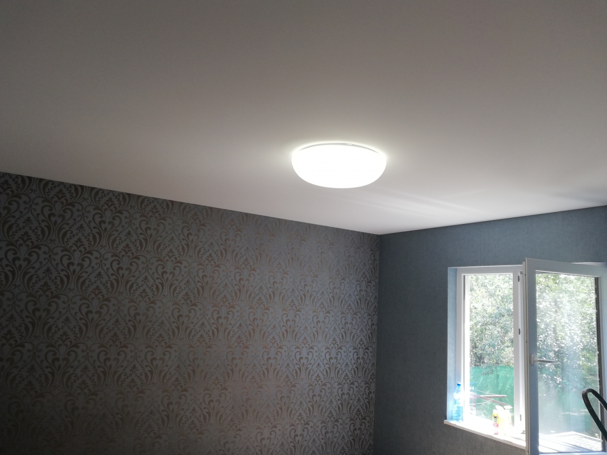Светещ опънат таван с принт и лед осветление, и стандартен бял опънат таван в коридор и спалня, град Стара Загора.